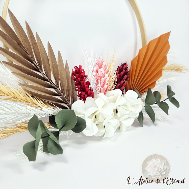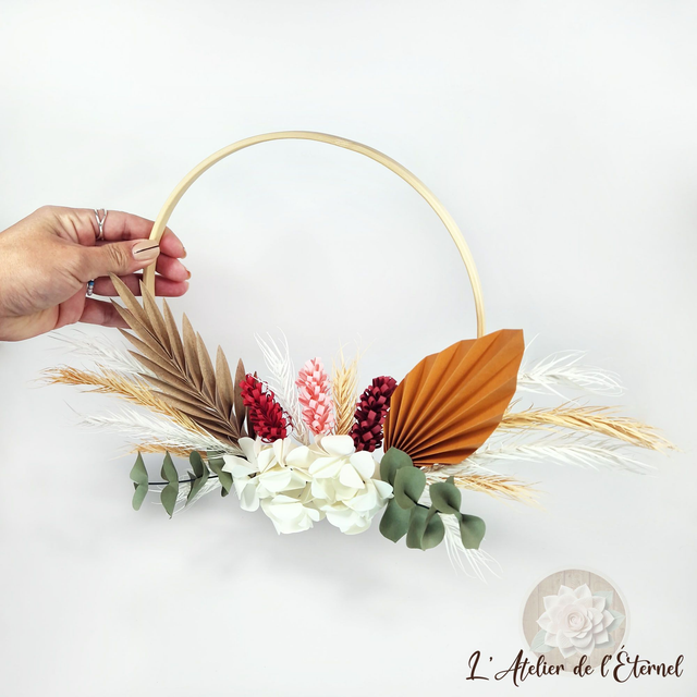 Après la cérémonie, le cerceau se transforme en décoration murale et peut accueillir une photo du mariage en son centre, permettant de conserver un souvenir précieux et durable de cette journée unique, bien au-delà de la cérémonie.