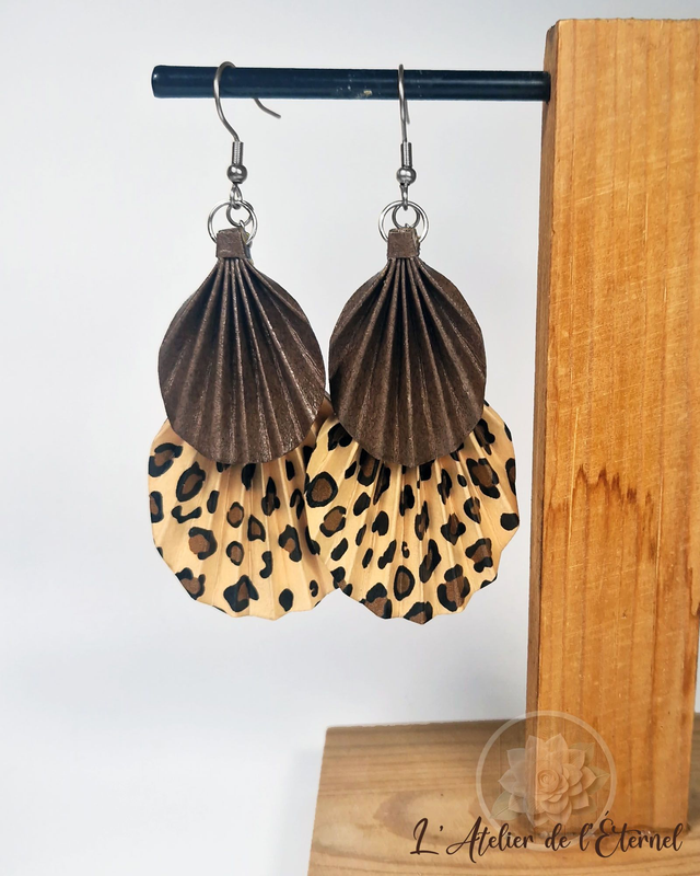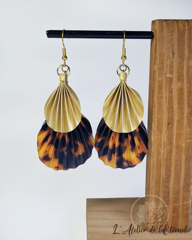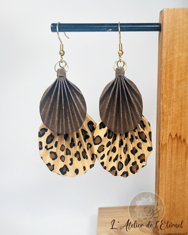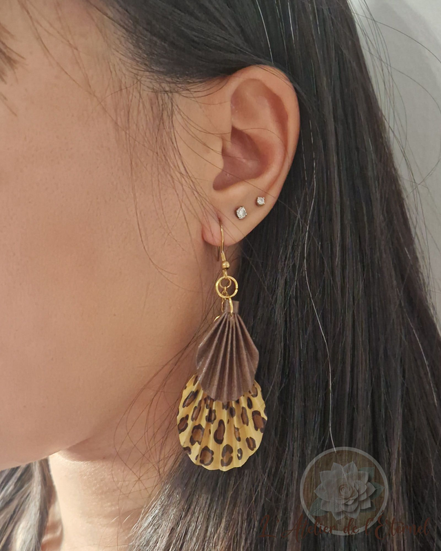 Ces boucles d'oreilles, réalisées en papier et inspirées de la forme du palmier Licuala, allient légèreté et confort pour un port agréable au quotidien.