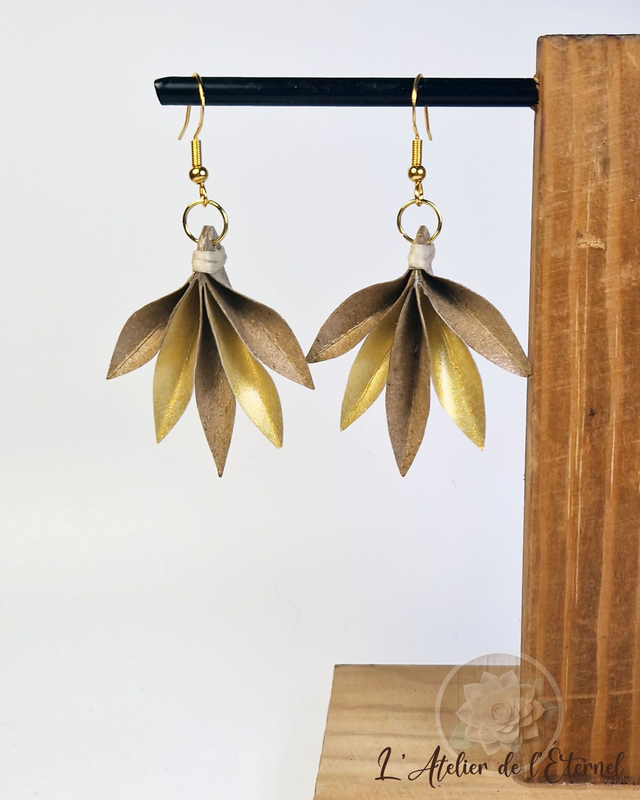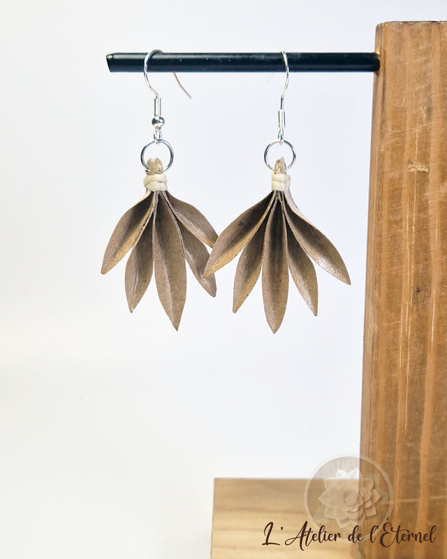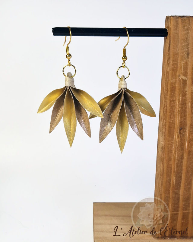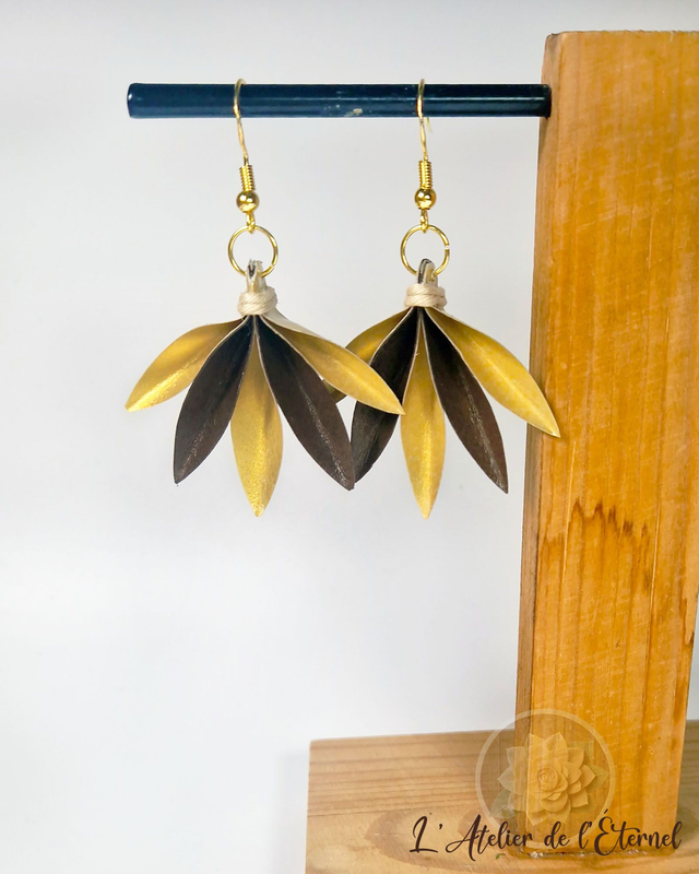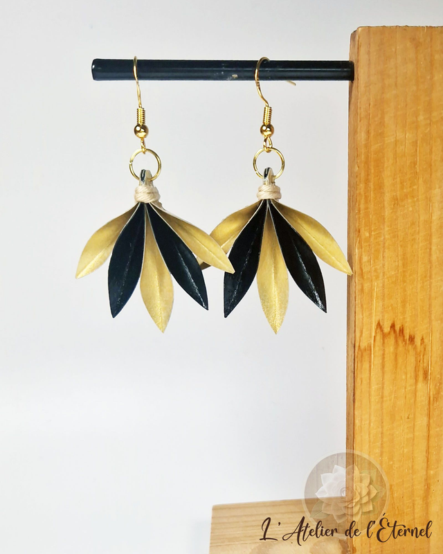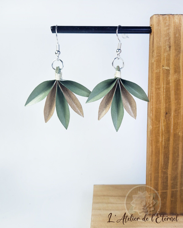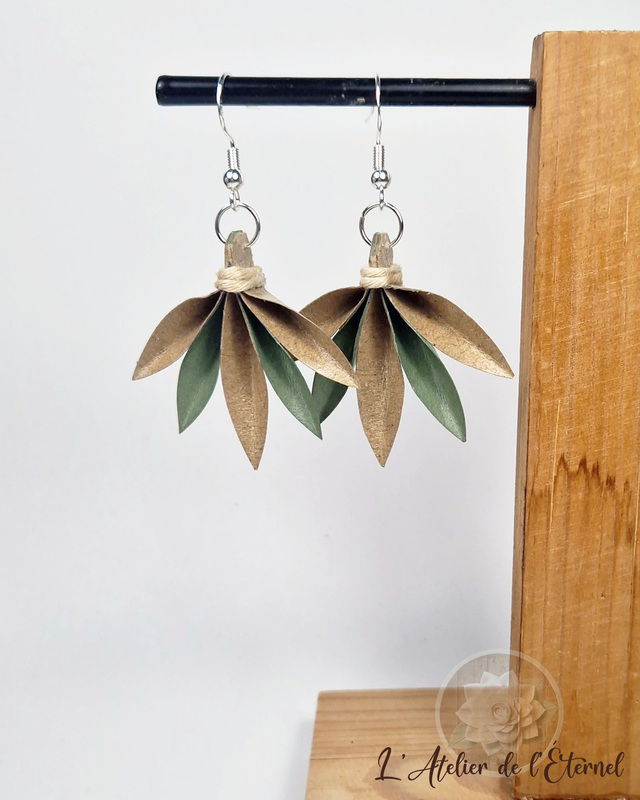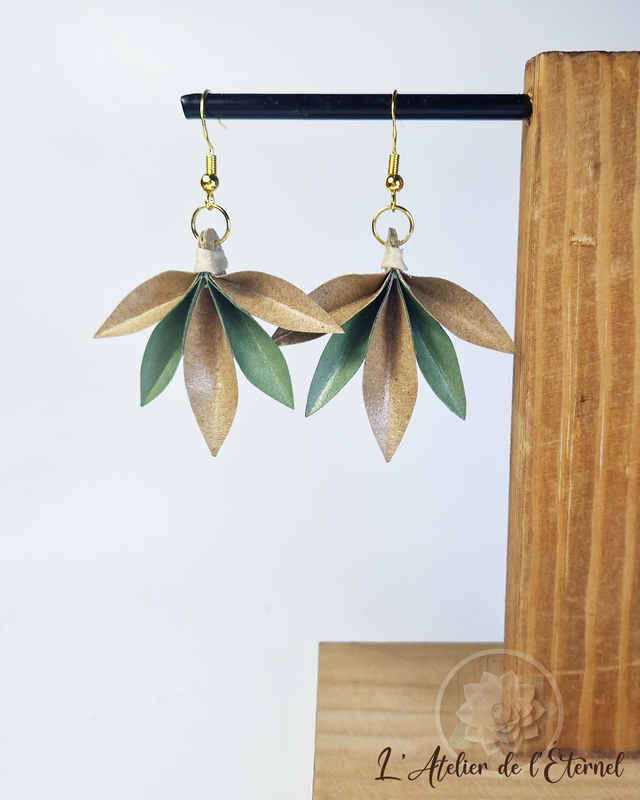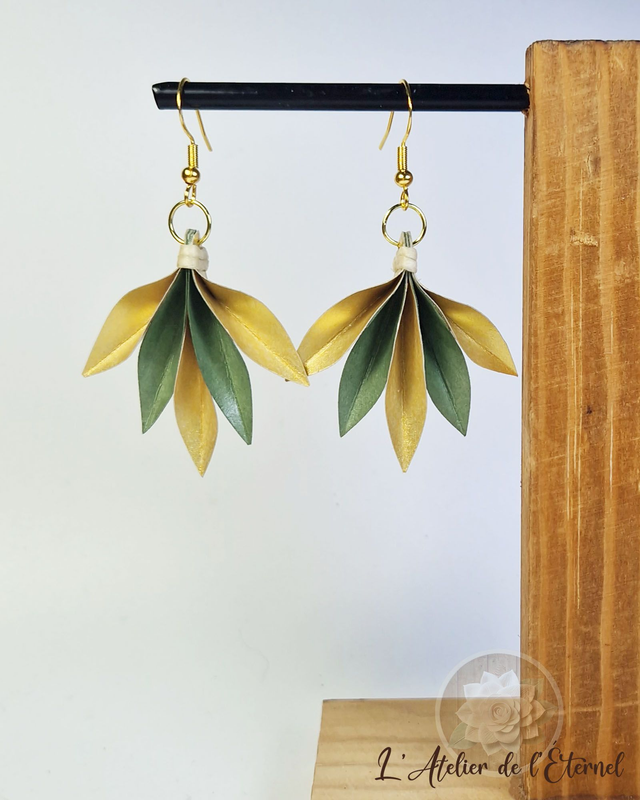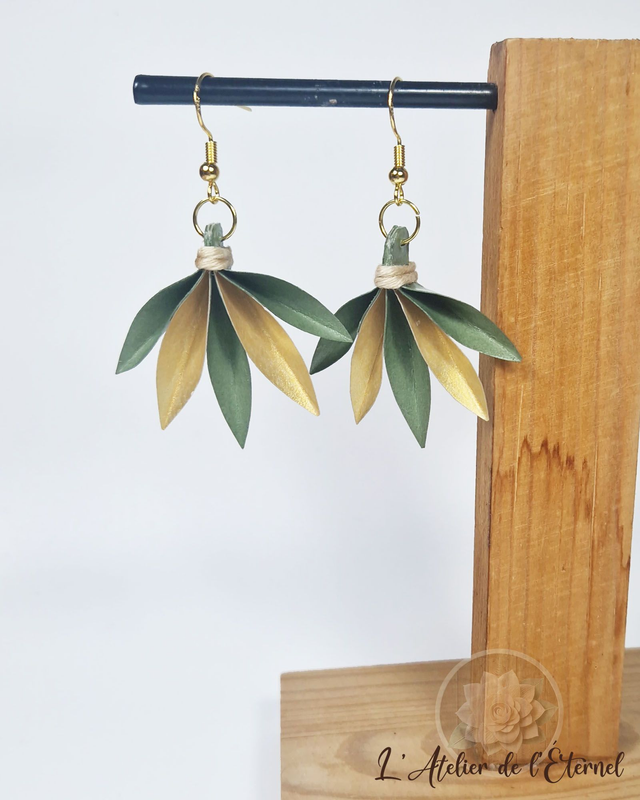 Inspirées des palmiers Phœnix de mes bouquets en origami, ces boucles d’oreilles allient finesse et originalité. Leur forme évoque l’élégance naturelle des feuillages tropicaux, réinterprétés en bijou.
